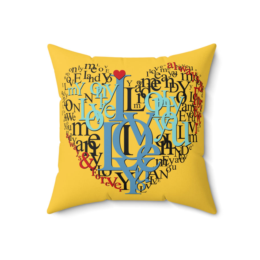 Embrace the warmth and affection of the "I Love You" Typography Art Pillow, a charming little pillow that will bring the vibrant expression of love right into the heart of your home decor! Each exquisite pillow is meticulously crafted with a playful twist of typography, showcasing the phrase "I Love You" in a way that's both enchanting and modern. The bright yellow background sets the stage for a sunlit ambiance, filling your space with joy and positive vibes.