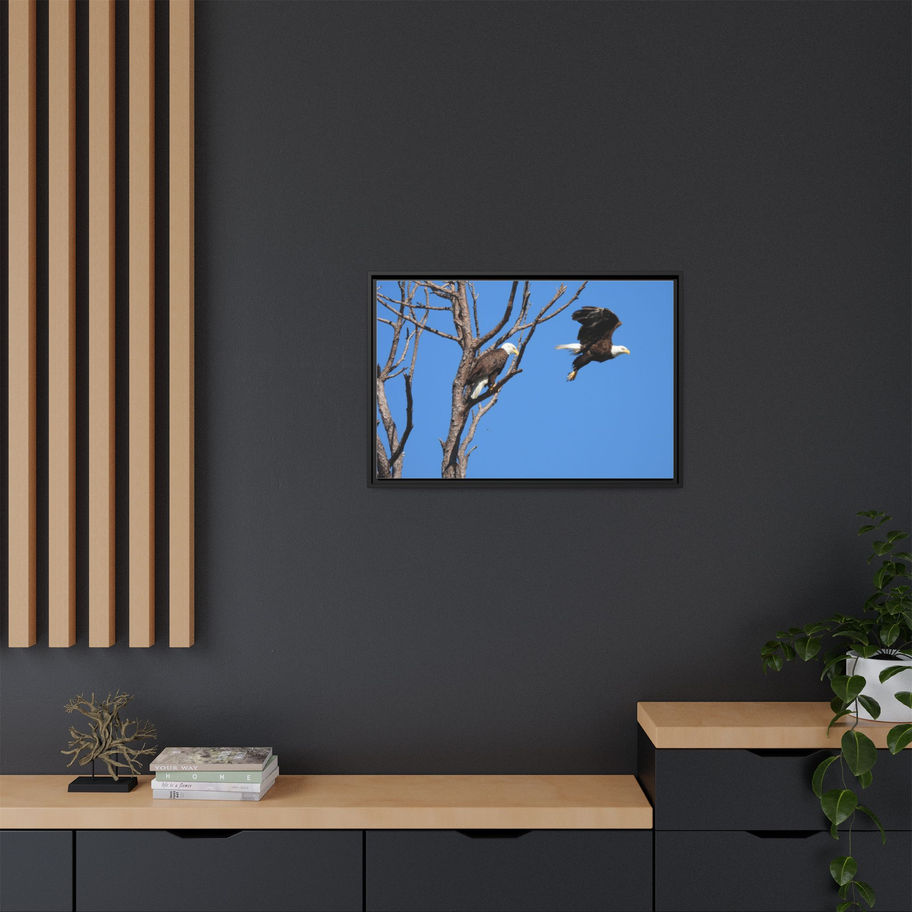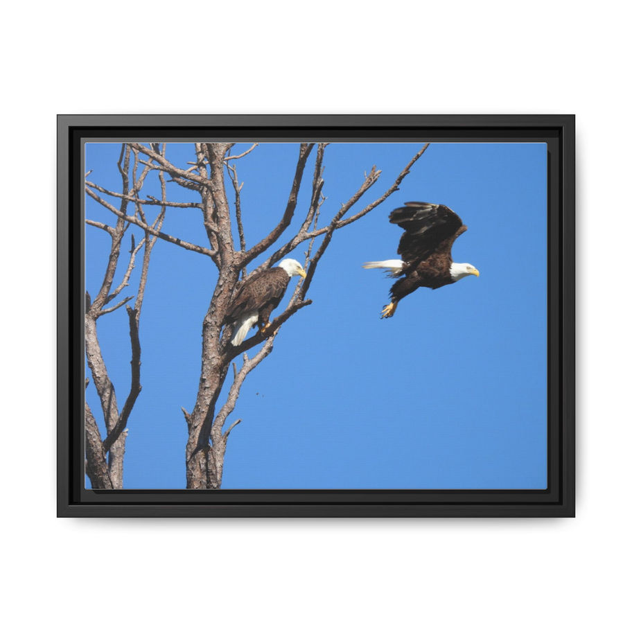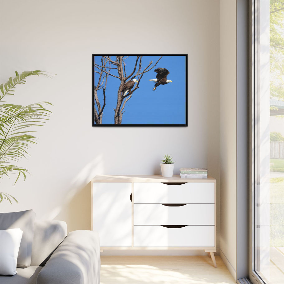 Capture the majestic beauty of nature with this Matte Canvas Print featuring a pair of Eagles in the Wild. Perfect for nature lovers and those seeking to bring the outdoors inside. Ideal for home decor, cabins, or as a thoughtful gift for wildlife enthusiasts. This canvas print is relevant for occasions like birthdays, holidays, or housewarmings.